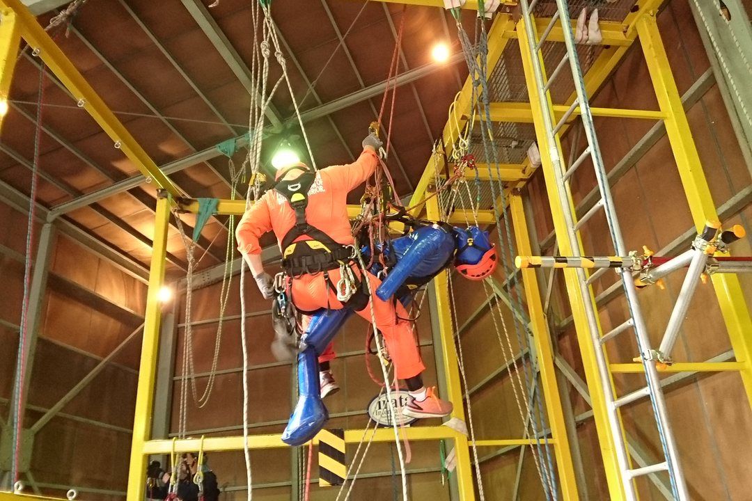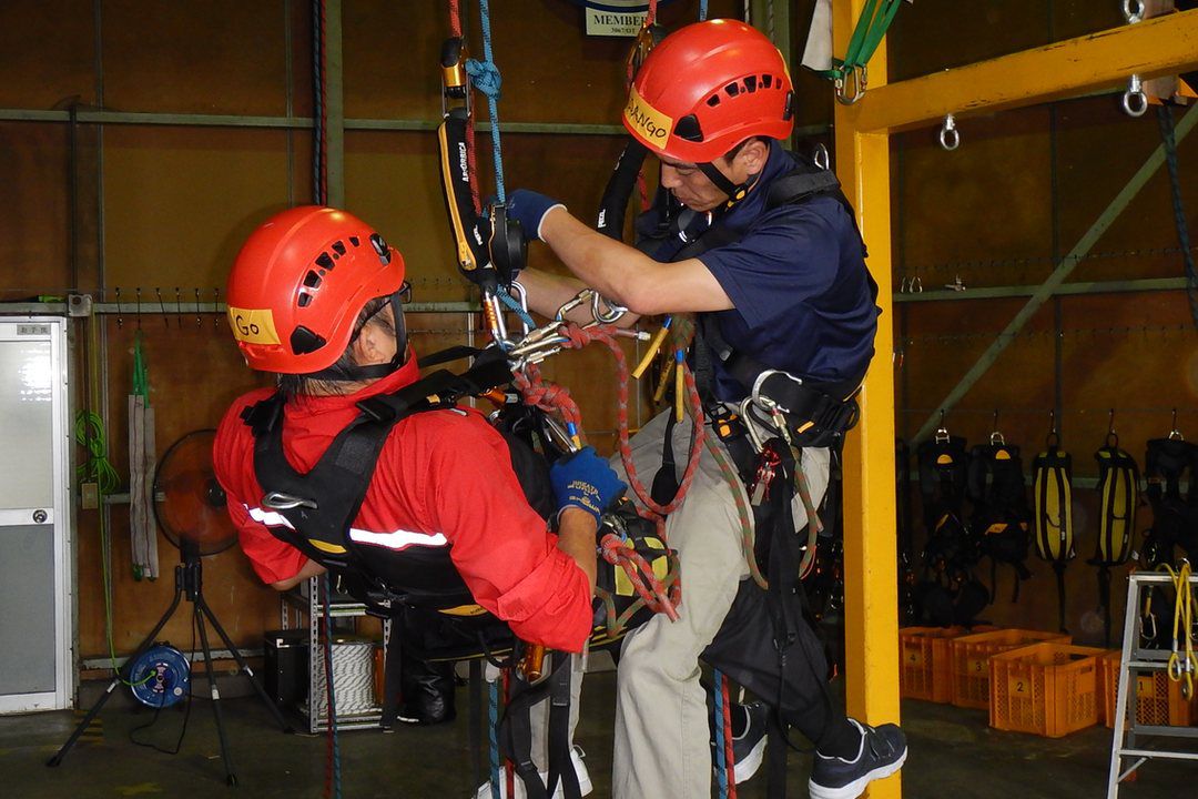 屋内でのロープアクセスのトレーニングを行います。レベルに応じた難易度でトレーニングが進みますので、未経験の方もレベル1からトレーニングを受けることができます。